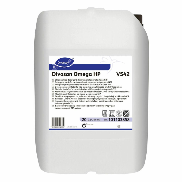 Description / Divosan Omega HP VS42, 20L Chlorine free for cleaning and disinfection in CIP systems Op. 25 kg
