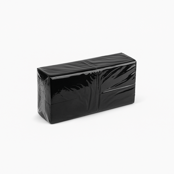 Black napkins 33 × 33 cm, 2-ply, folded 1/8 are an elegant choice for restaurants, cafés, bars, hotels, and catering companies. Perfect for daily service as well as special occasions such as banquets, events, and receptions. The classic black color adds a touch of prestige and fits modern table arrangements.
