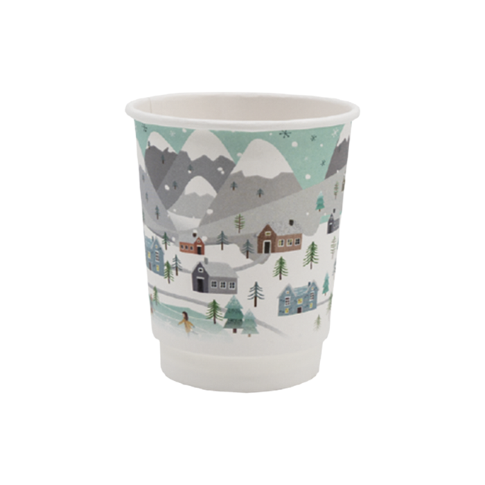 This 300 ml paper cup with a winter print is an excellent choice for the food service industry during the autumn-winter season. Thanks to its sturdy construction with an additional paper wrapper, this vessel is perfect for serving hot beverages such as large coffees (latte, americano), winter teas, or mulled wine. The festive design serves as a ready-made decoration that attracts customers at markets and cafes offering takeaway drinks.