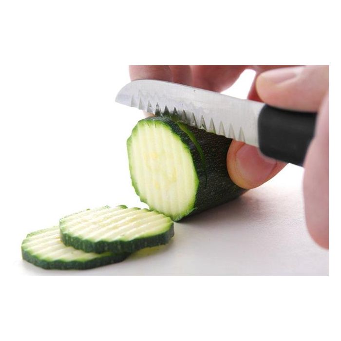 Wykonany ze stali nierdzewnejUchwyt z polipropylenuMożna myć w zmywarkachZąbkowane ostrze 90mm