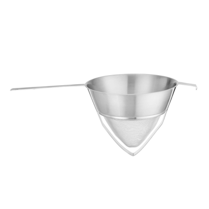 A termék teljes egészében szatírozott AISI 201 rozsdamentes acélból készül, amelyet nagy tartósság jellemez. Az extra sűrű hálós szita, amely ráadásul megerősített, magas funkcionalitást biztosít. A fogantyú felakasztónyílással van ellátva, megerősítve a könnyű tárolás érdekében. Ezenkívül a termék a stabilitás érdekében támasztó fogantyúval rendelkezik. Az ívelt perem növeli az esztétikát és a használat kényelmét. Mosogatógépben mosható a könnyű tisztítás érdekében.