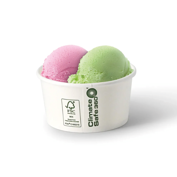 Biała miseczka papierowa o pojemności użytkowej 180 ml (całkowitej 220 ml) to nowoczesne opakowanie wykorzystujące technologię powłoki dyspersyjnej (DSP). Jest przeznaczona do serwowania mrożonych deserów, takich jak lody gałkowe, sorbety czy mrożone jogurty. Dzięki odporności na temperatury do +70°C, sprawdzi się również przy ciepłych przekąskach, owsiankach czy sałatkach owocowych w lodziarniach i kawiarniach.