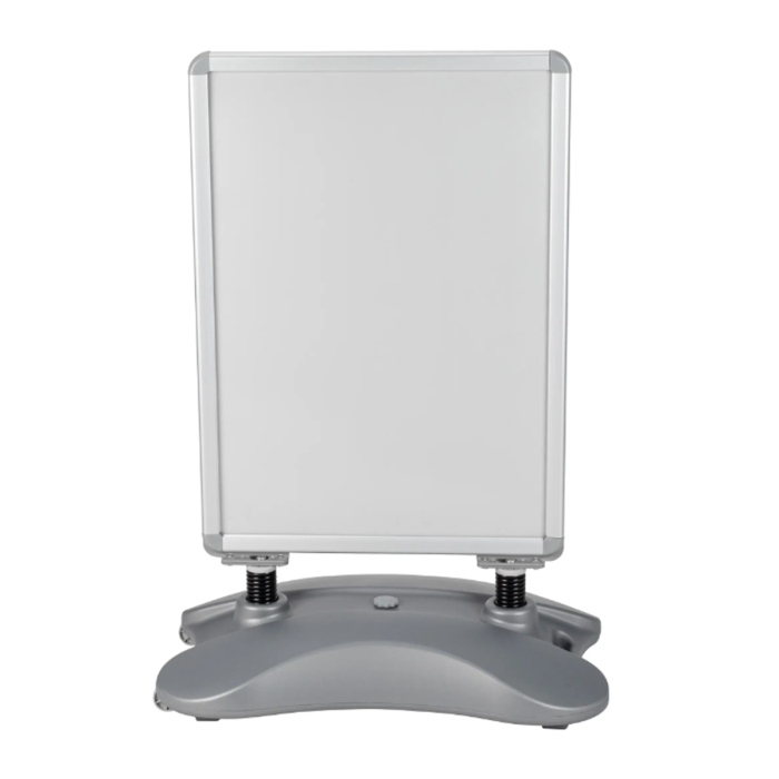 Dwustronny potykacz reklamowy w formacie A1 z solidną podstawą do dociążenia wodą lub piaskiem. Przeznaczony do ekspozycji plakatów i komunikatów marketingowych przed lokalami handlowymi, punktami usługowymi oraz restauracjami. Stabilna konstrukcja sprawdza się zarówno wewnątrz, jak i na zewnątrz budynków.
