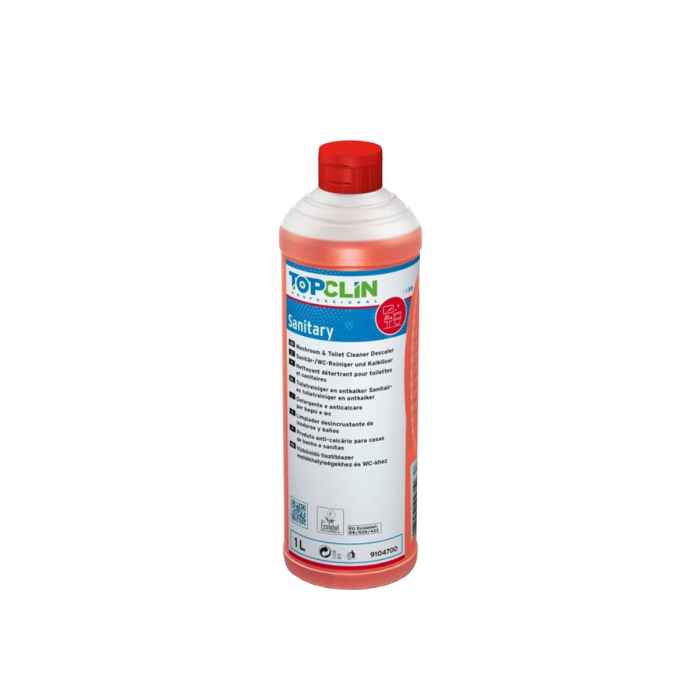 TOPCLIN by ECOLAB Sanitary to środek do codziennego czyszczenia i odkamieniania łazienek oraz toalet. Przeznaczony jest do stosowania na kwasoodpornych powierzchniach, takich jak płytki, armatura czy podłogi w łazienkach. Doskonale sprawdza się również przy czyszczeniu muszli klozetowych – zarówno w domach, jak i w przestrzeniach publicznych.